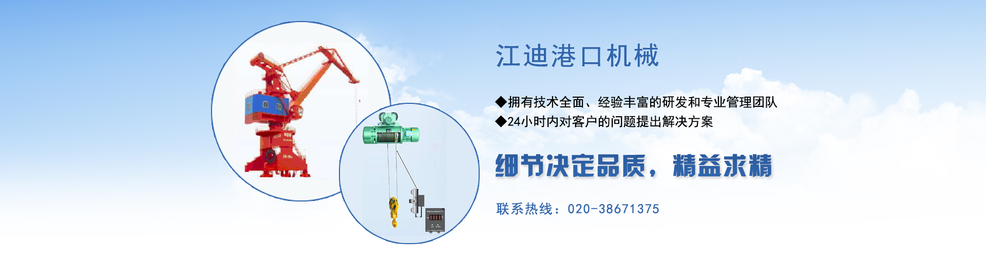 廣州江迪港口機(jī)械有限公司是設(shè)計(jì)、制造和維修起重機(jī)的專業(yè)企業(yè),位于廣州市天河區(qū),生產(chǎn)基地位于佛山石啃鋼鐵市場A區(qū),擁有2300平米重型結(jié)構(gòu)廠房。公司致力于起重設(shè)備整體解決方案,從各型機(jī)械設(shè)計(jì)、制造、維修,到起重安全保護(hù)、全面解析客戶高端、深層需求。